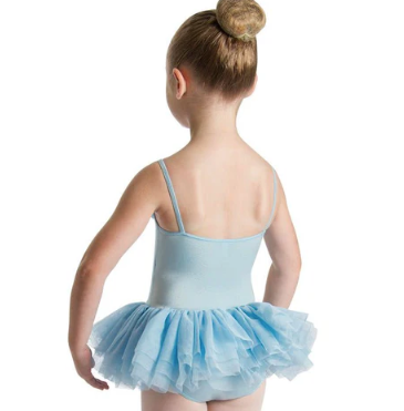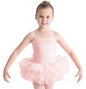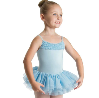 A beautiful tutu dress featuring a short layered fluffy tutu skirt, complimented with a soft ruffle across the neckline and a straight back.